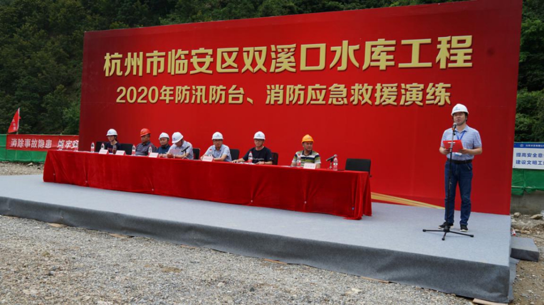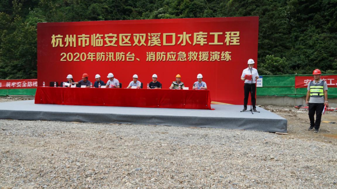 為進(jìn)一步增強(qiáng)杭州市臨安區(qū)雙溪口水庫(kù)工程全體人員防汛防臺(tái)和消防安全意識(shí),強(qiáng)化應(yīng)急預(yù)案保障措施的落實(shí),提高各參建單位應(yīng)對(duì)突發(fā)性洪水和火災(zāi)等事件的應(yīng)急能力,確保汛期施工人員生命財(cái)產(chǎn)安全,減少火災(zāi)事故災(zāi)害損失。6月12日上午,雙溪口水庫(kù)工程法人單位杭州魯潤(rùn)水電開發(fā)有限公司組織各參建單位,開展防汛防臺(tái)和消防應(yīng)急救援演練活動(dòng)。