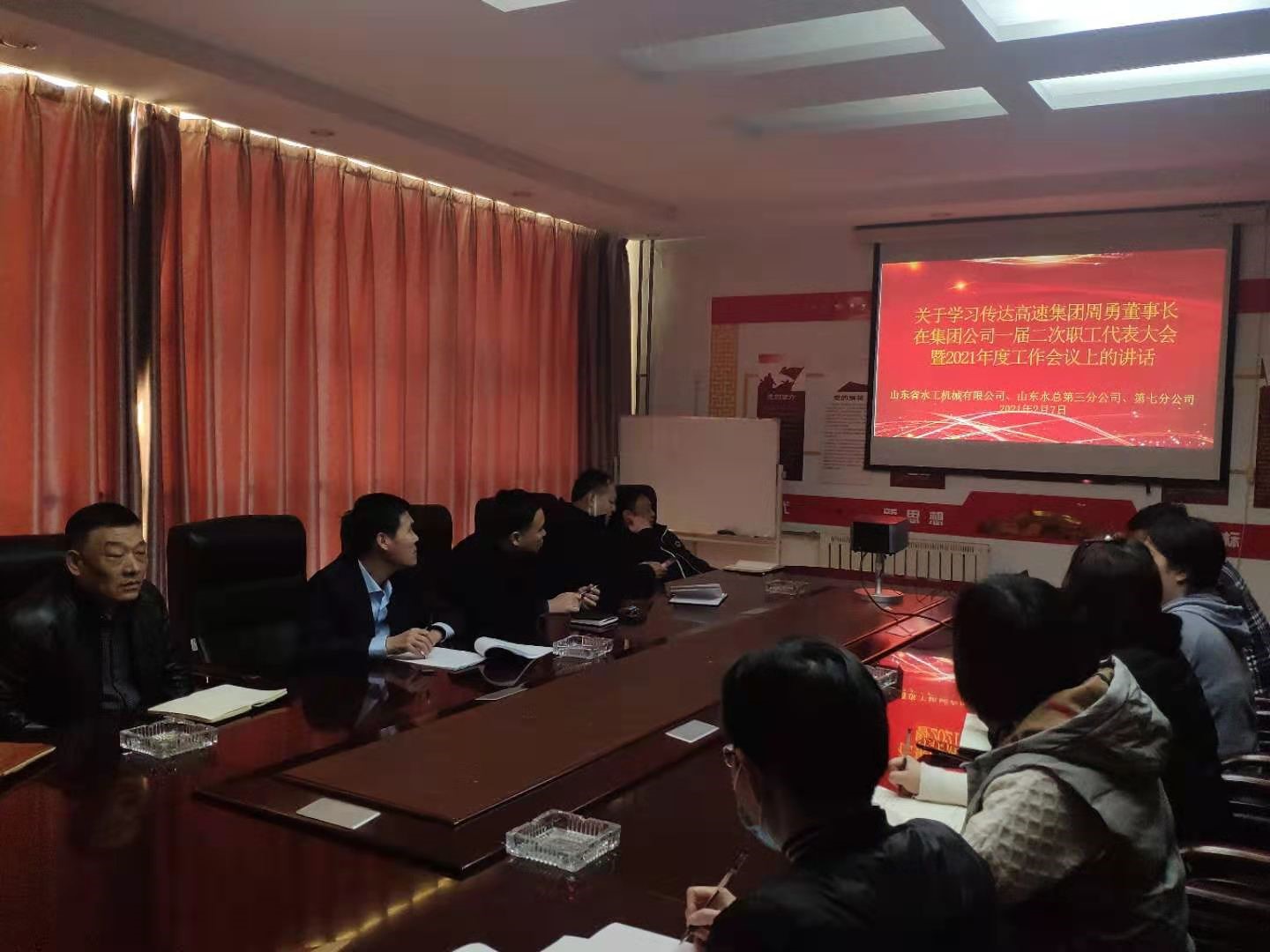 2月7日上午,山東省水工機(jī)械有限公司、山東水總第三分公司、第七分公司召開黨支部擴(kuò)大會(huì)議傳達(dá)學(xué)習(xí)集團(tuán)黨委書記、董事長(zhǎng)周勇同志在集團(tuán)公司一屆二次職工代表大會(huì)暨2021年度工作會(huì)議上的講話。