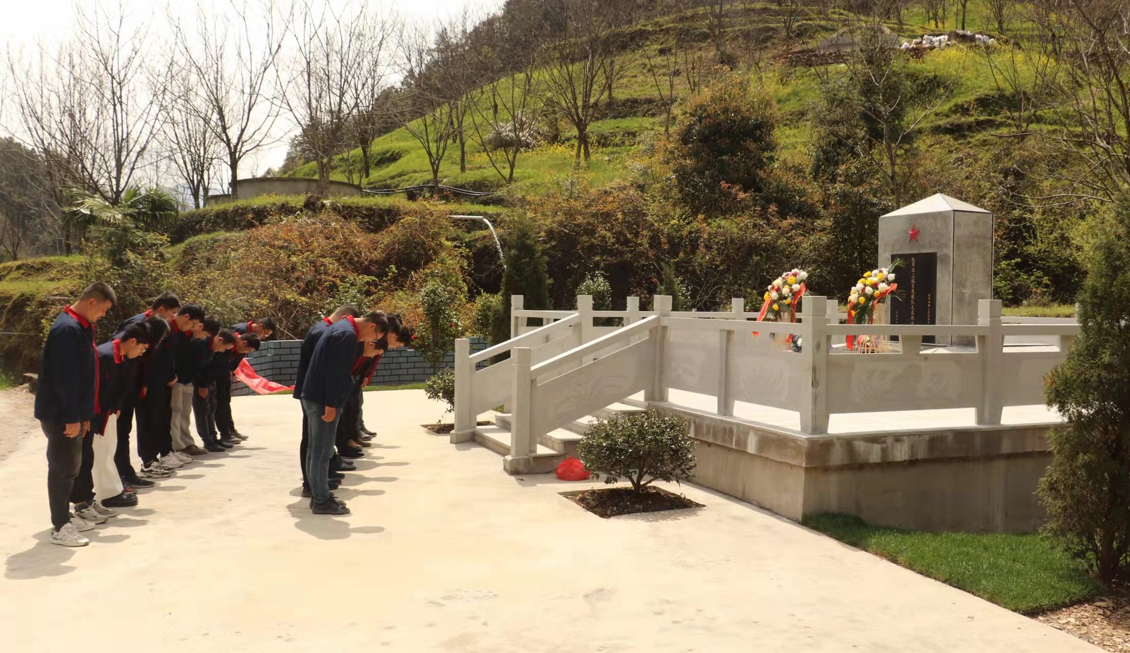 3月30日,突擊隊(duì)成員來到項(xiàng)目駐地清涼峰鎮(zhèn)梓鵬塢的紅軍北上抗日先遣隊(duì)無名烈士墓。面對(duì)著革命英雄的墓碑,隊(duì)員們心情激動(dòng),思緒萬千。通過瞻仰烈士墓碑、敬獻(xiàn)鮮花、鞠躬默哀等方式,祭奠長(zhǎng)眠于此的革命先烈。