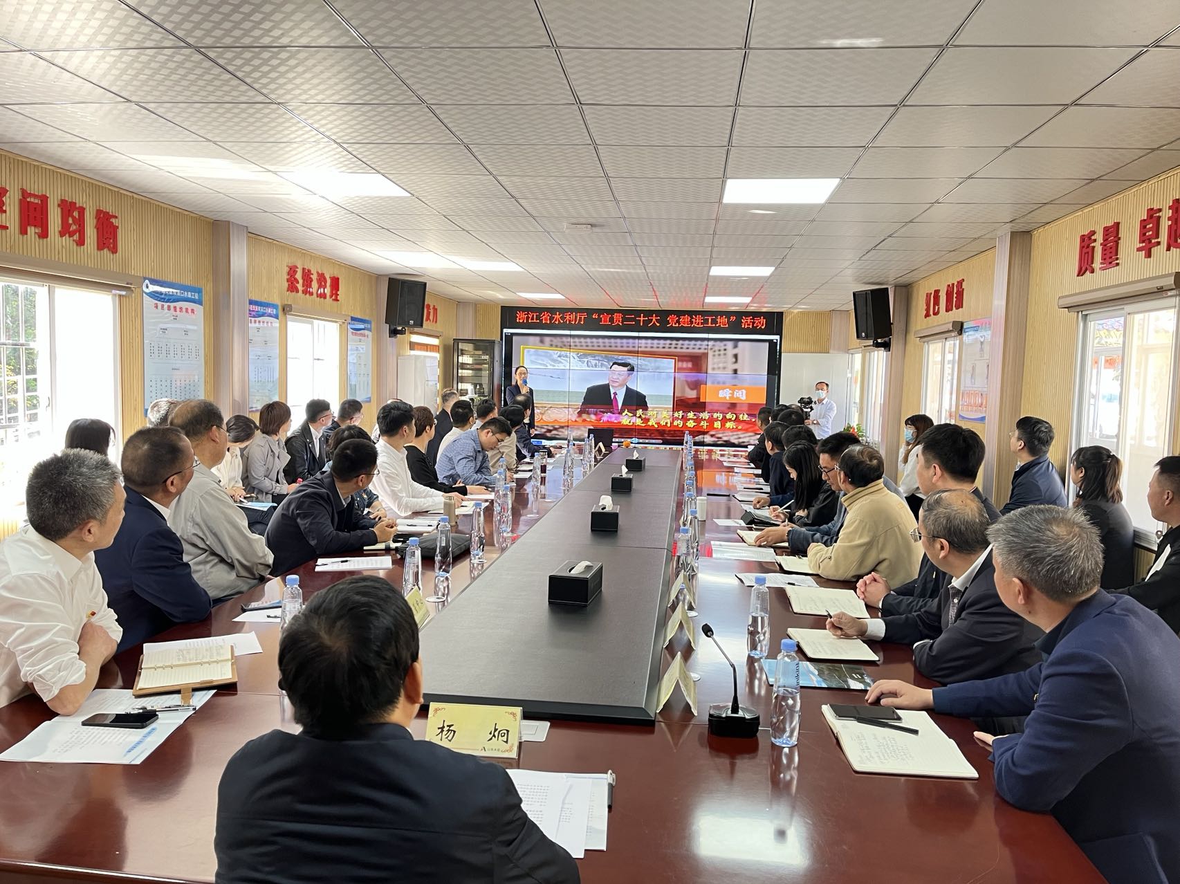11月10日,浙江省水利廳副廳長楊炯率省水利廳建設處、質(zhì)管中心等負責同志到雙溪口水庫工程開展“宣貫二十大 黨建進工地”活動。此次活動旨在把黨建課堂搬到工程建設現(xiàn)場,把宣講“二十大”深入基層,充分激發(fā)廣大工程建設者建功新時代的積極性、主動性、創(chuàng)造性。