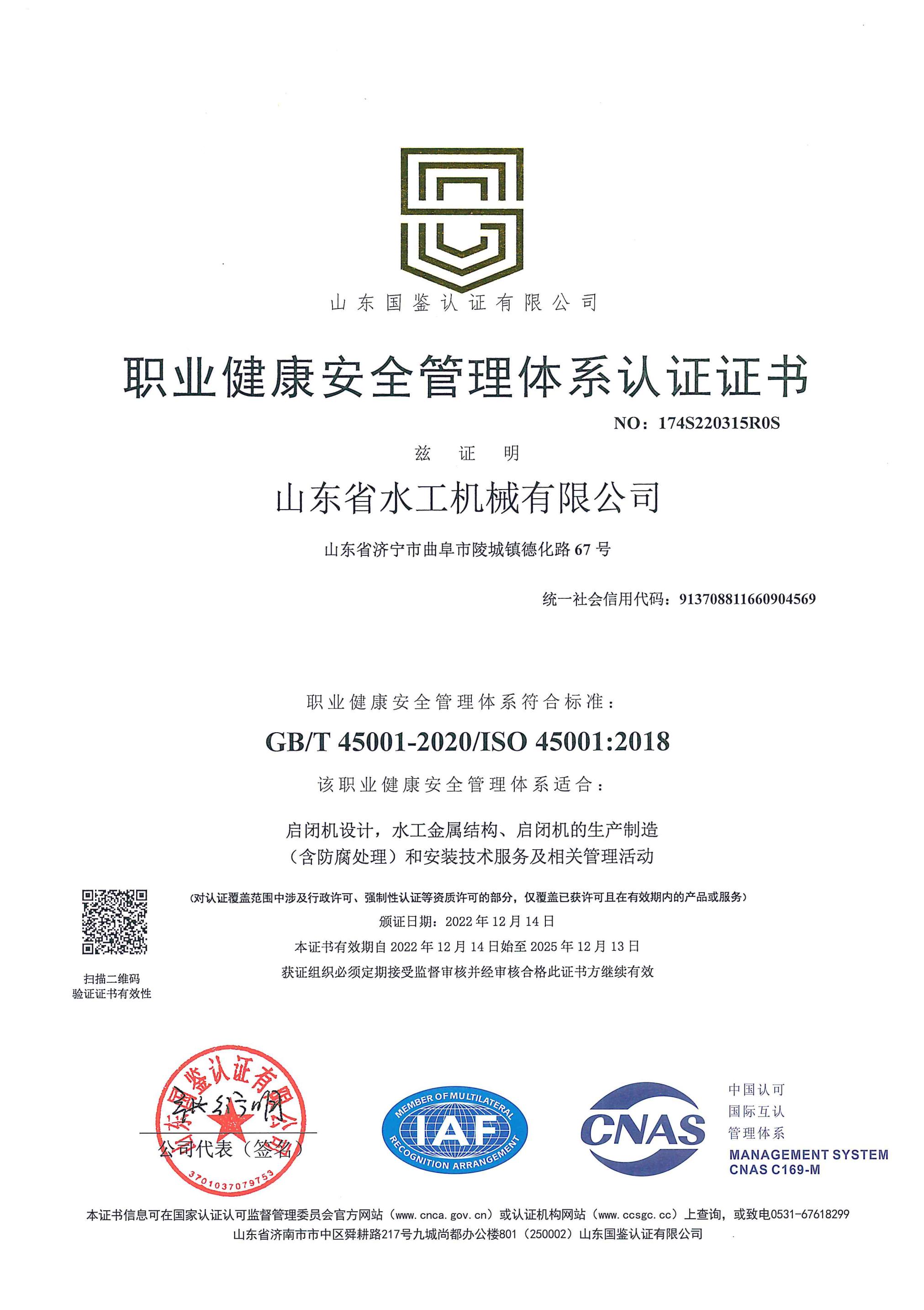 12月22日,水工機械公司順利通過質量、環(huán)境、職業(yè)健康安全管理體系重新認證審核。