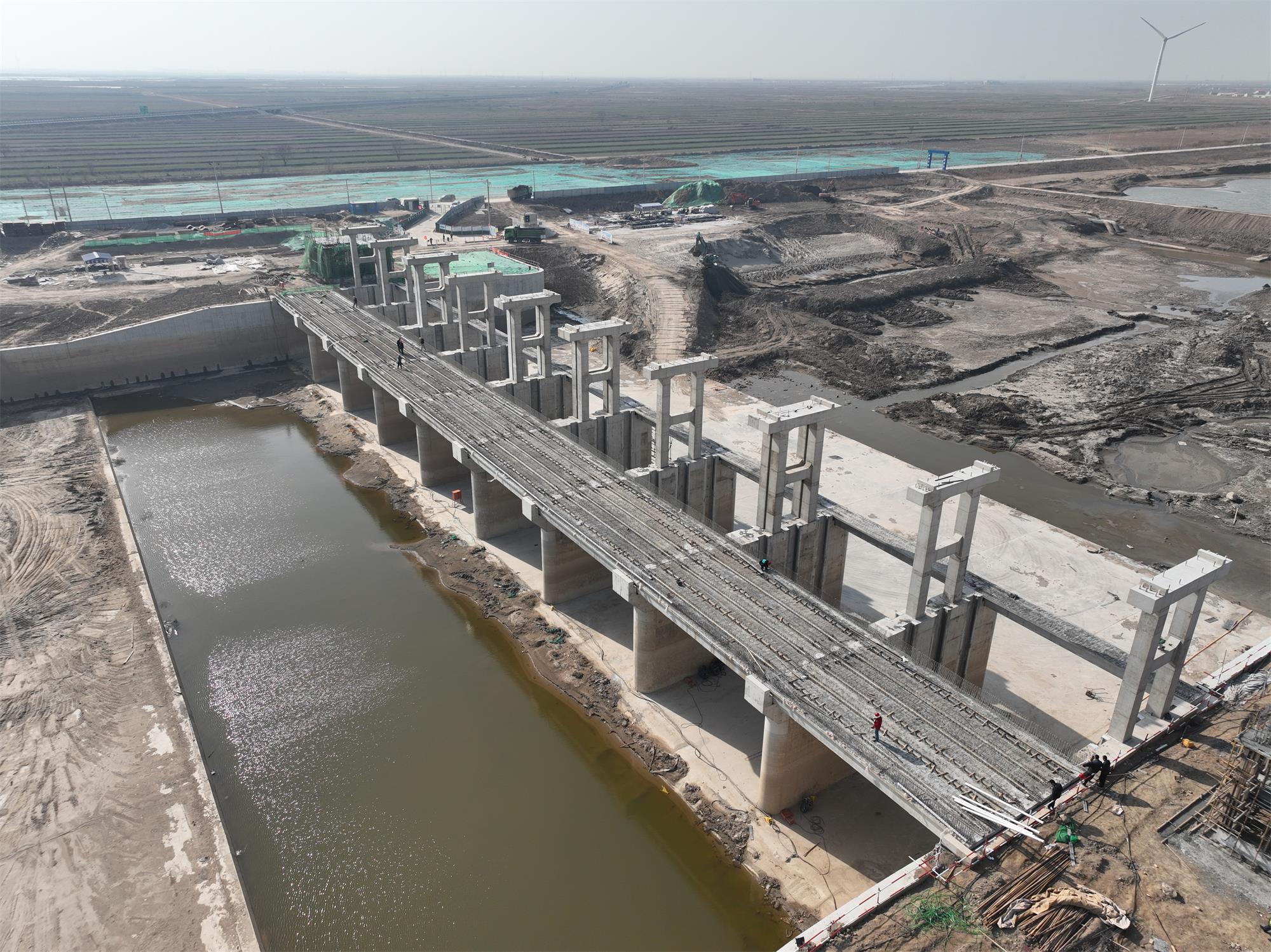 無棣縣馬頰河黃瓜嶺橡膠壩除險(xiǎn)加固工程順利完成機(jī)架橋板吊裝任務(wù)