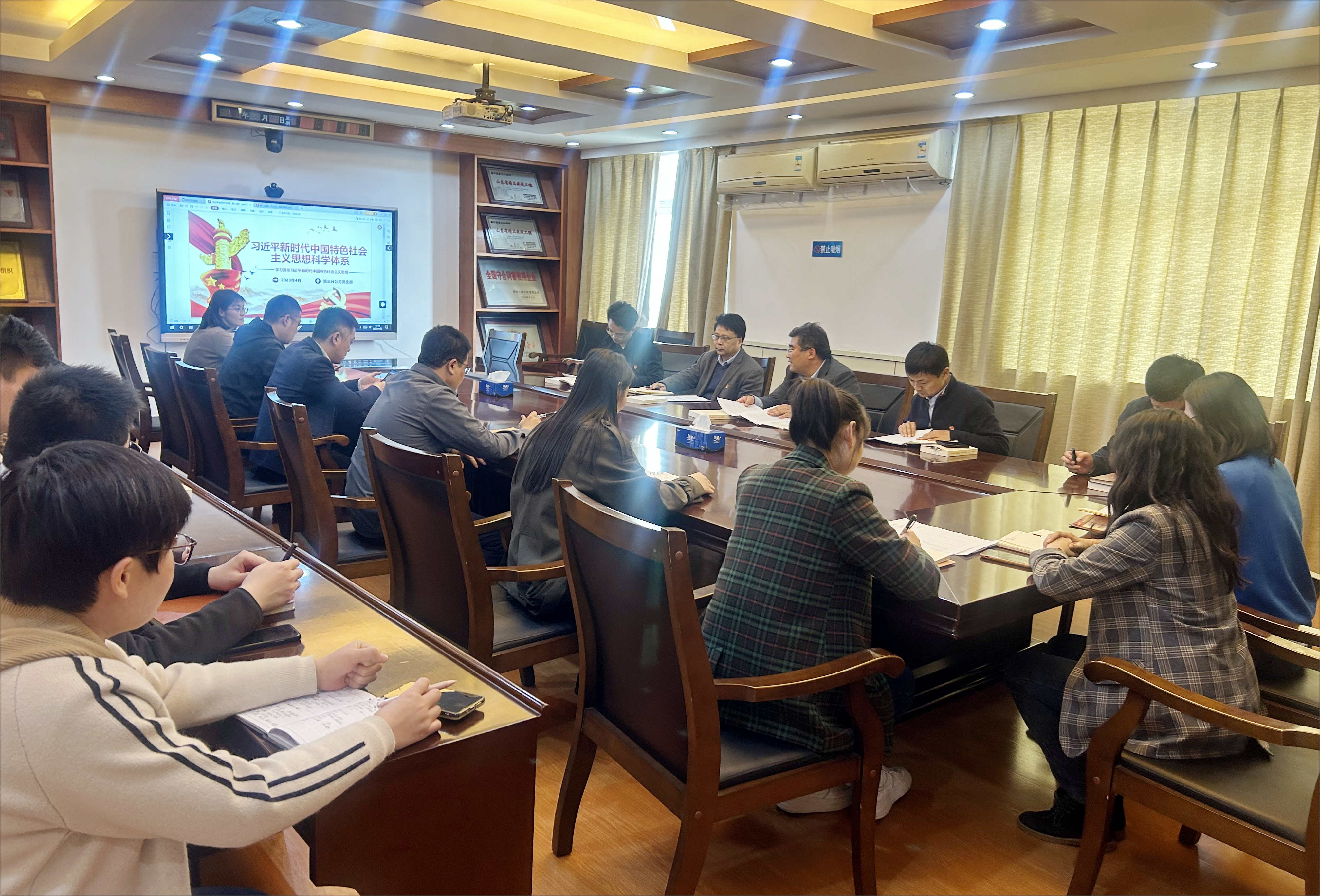 隨后,大家共同學(xué)習(xí)了“習(xí)近平新時(shí)代中國特色社會主義思想科學(xué)體系知識點(diǎn)”學(xué)習(xí)課件,并開展熱烈的交流討論。黨員干部紛紛表示,要努力將習(xí)近平新時(shí)代中國特色社會主義思想學(xué)深悟透,做到以學(xué)鑄魂、以學(xué)增智、以學(xué)正風(fēng)、以學(xué)促干。將學(xué)習(xí)作為自己的“必修課”,拿好學(xué)習(xí)的“基本分”,學(xué)會用新觀點(diǎn)新方法解決老問題,將學(xué)習(xí)成效轉(zhuǎn)化為做好本職工作、推動公司高質(zhì)量發(fā)展的生動實(shí)踐。