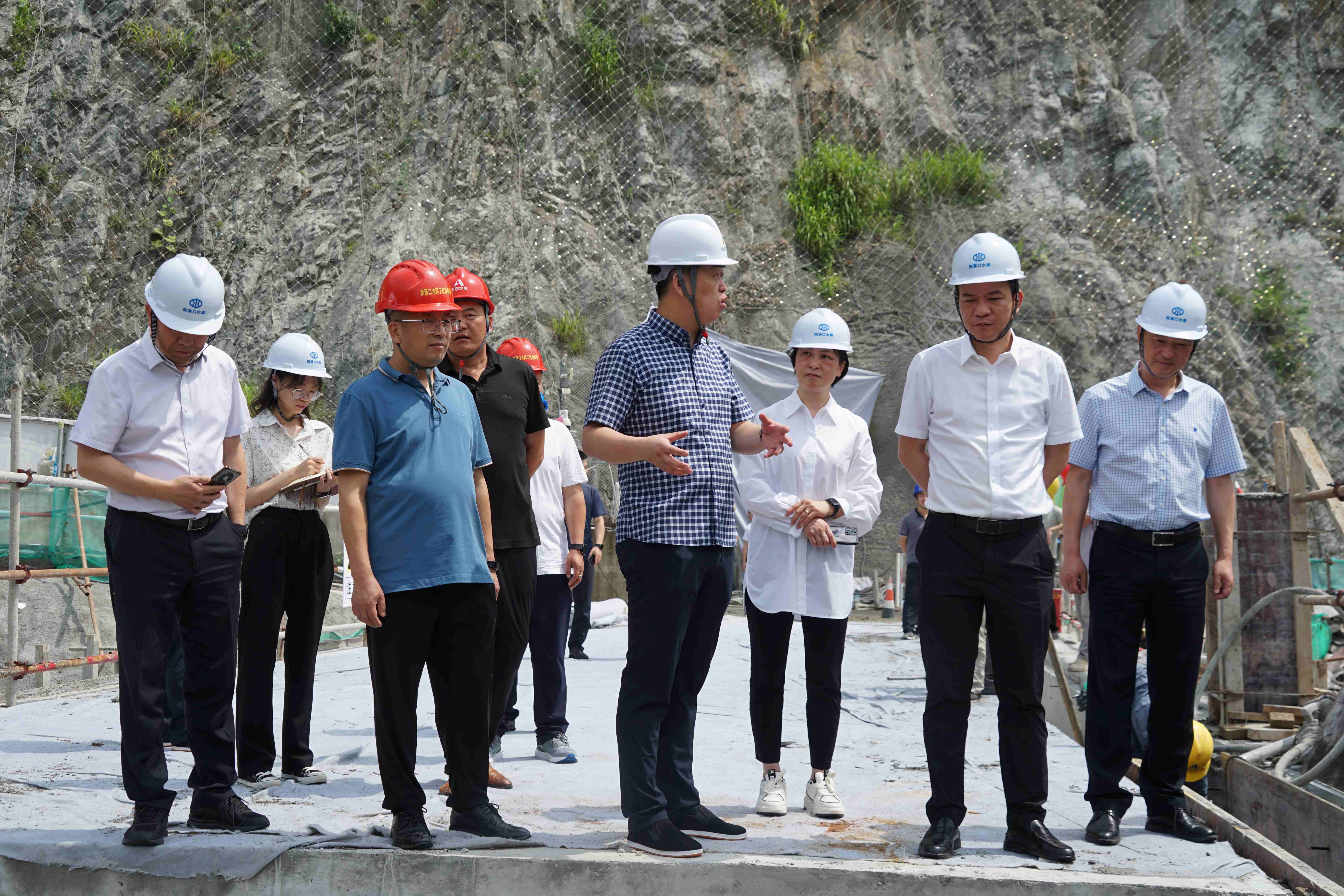 楊國正一行到雙溪口水庫工程察看了施工現(xiàn)場,詳細了解工程建設情況,聽取工程進展、工作安排等情況介紹,對雙溪口水庫工程取得的成績給予充分肯定。楊國正強調(diào),要在保證質(zhì)量、安全的基礎上,進一步強化施工組織管理,做到施工程序規(guī)范、嚴謹,確保工程如期投入使用,發(fā)揮效益。