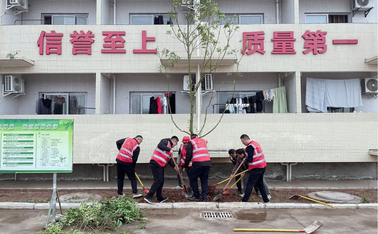活動現(xiàn)場,項(xiàng)目部黨員充分發(fā)揮先鋒模范作用,身先士卒搬運(yùn)樹苗,團(tuán)員青年們也個個熱情高漲、干勁十足。大家分工明確,互相協(xié)作,一挖一鏟,一揮一種,精心栽培,用心澆灌,踐行了“綠水青山就是金山銀山”的理念,美化了項(xiàng)目駐地,營造了綠色舒適的工作生活環(huán)境,展現(xiàn)了企業(yè)良好形象。