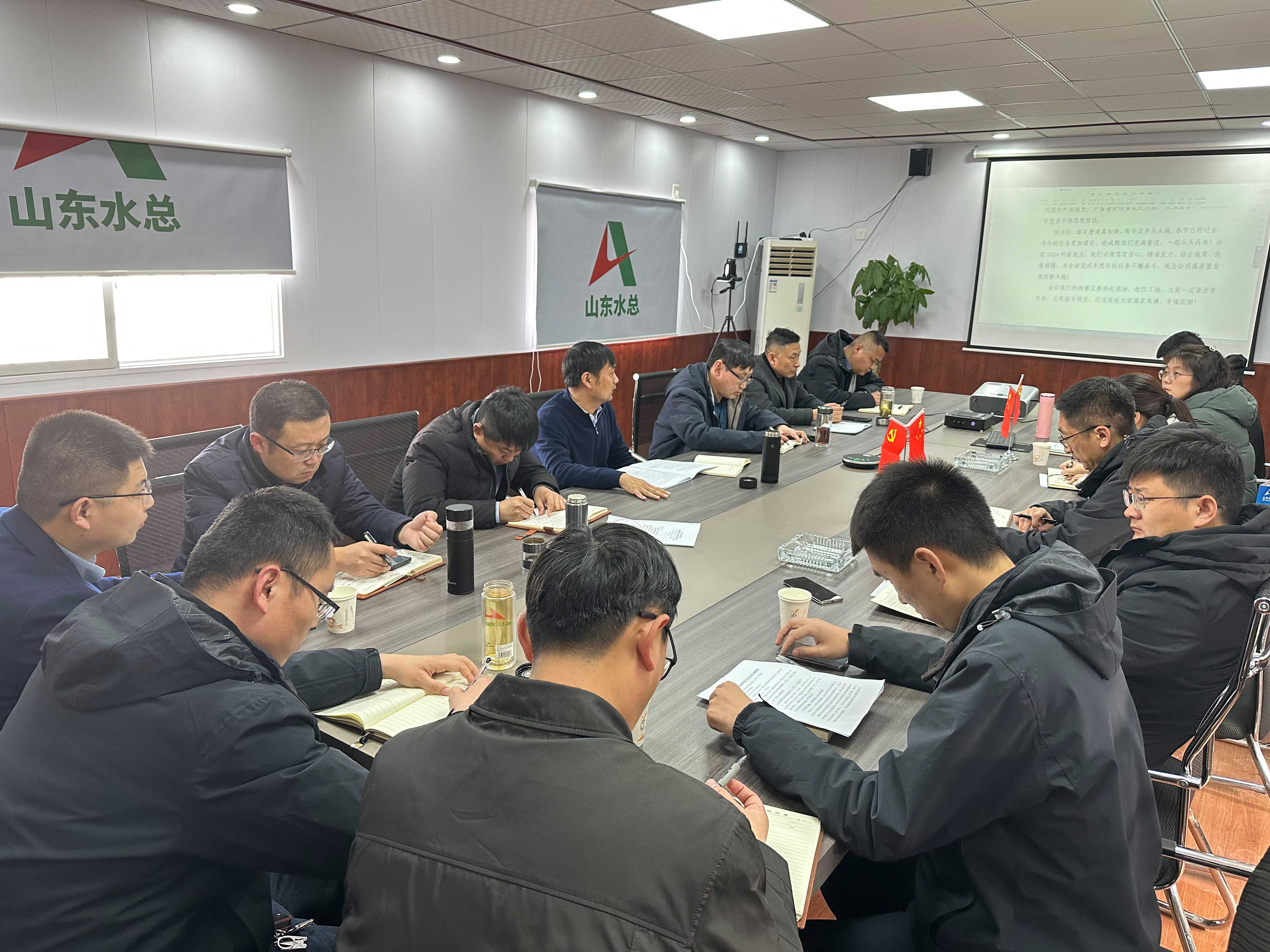 為明確2024年工作思路和目標(biāo)任務(wù),謀劃部署重點(diǎn)工作,3月6日,第三分公司在沂南縣岸堤水源項(xiàng)目召開2024年度工作會(huì)議,會(huì)議由黨支部書記、總經(jīng)理徐浩主持,副總經(jīng)理、主任專家、督導(dǎo)專員以及主要管理人員參會(huì)。