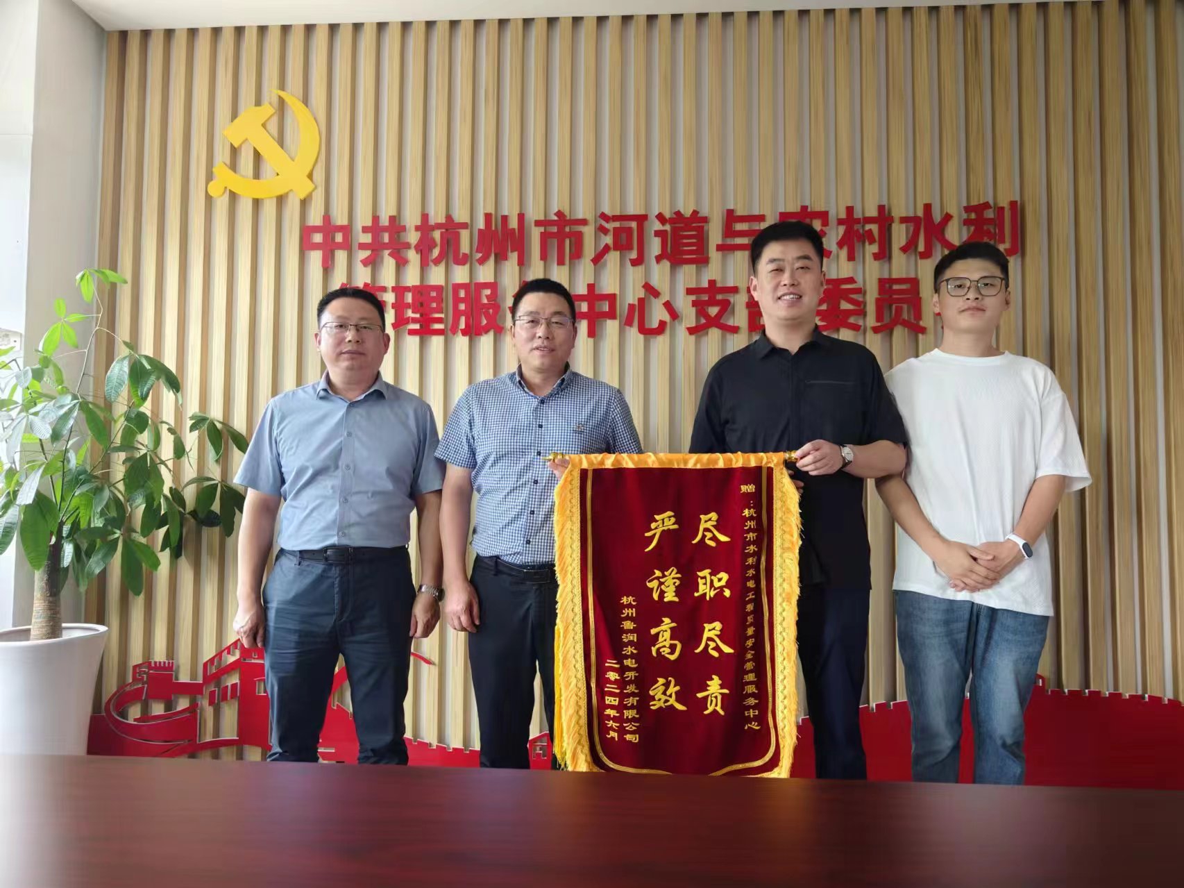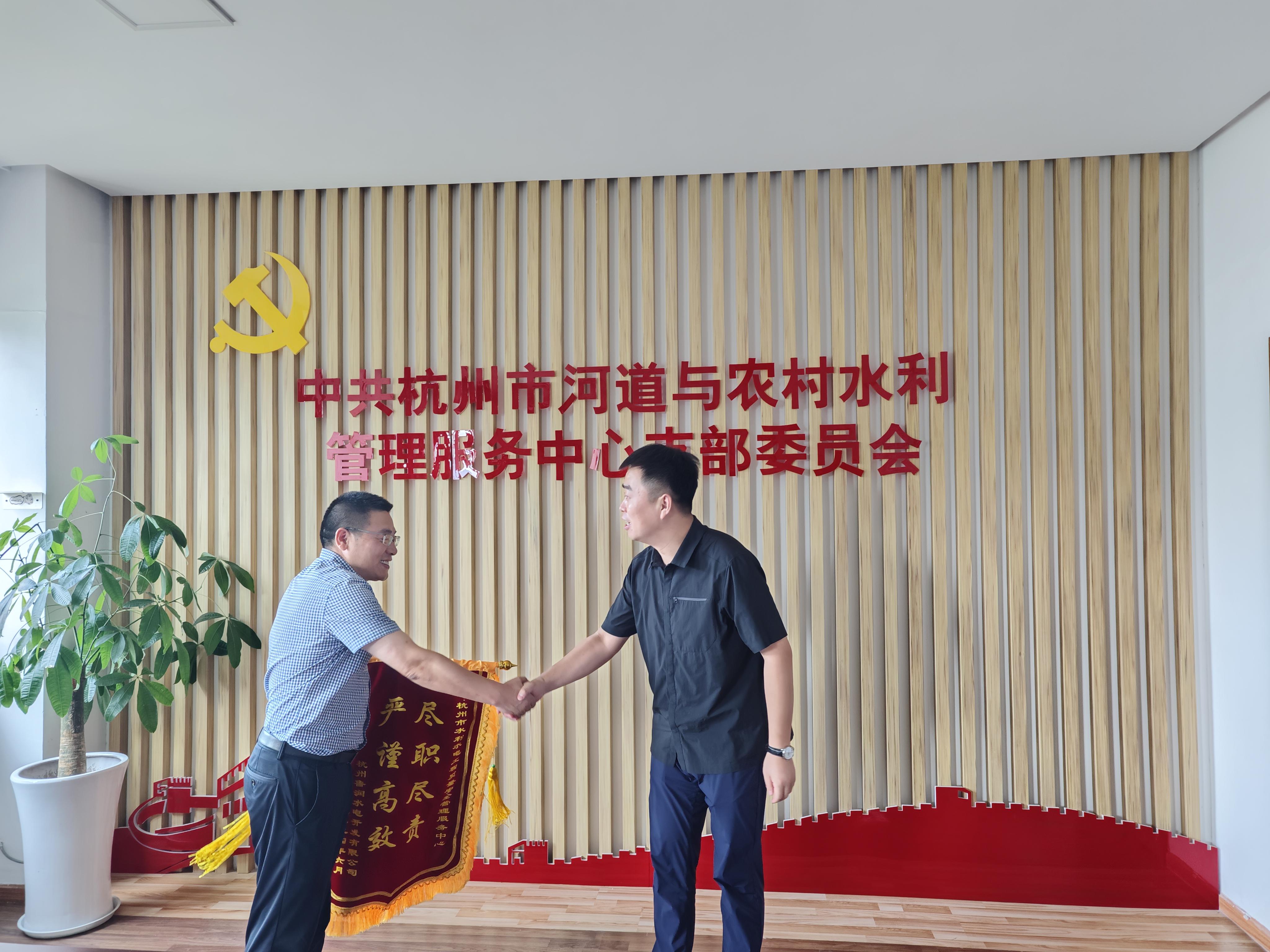 專業(yè)負責(zé)鑄品質(zhì) 饋贈錦旗表謝意——杭州魯潤公司向杭州市水利水電工程質(zhì)量安全管理服務(wù)中心贈送錦旗
