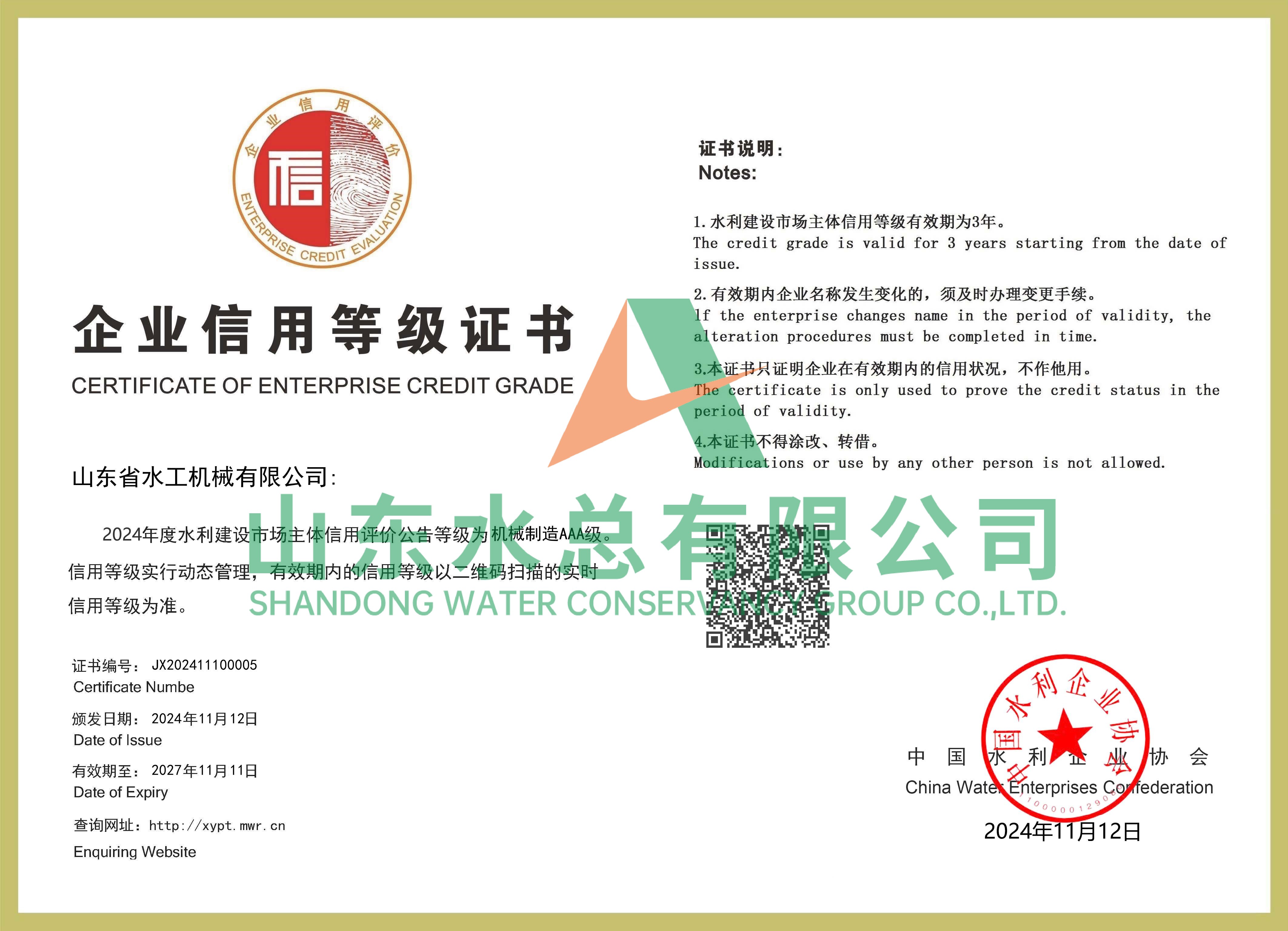 水工機(jī)械公司獲全國水利建設(shè)市場AAA主體信用評價