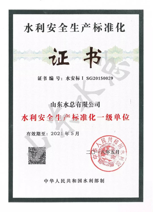 山東水總有限公司率先通過(guò)水利安全生產(chǎn)標(biāo)準(zhǔn)化一級(jí)單位延期審核