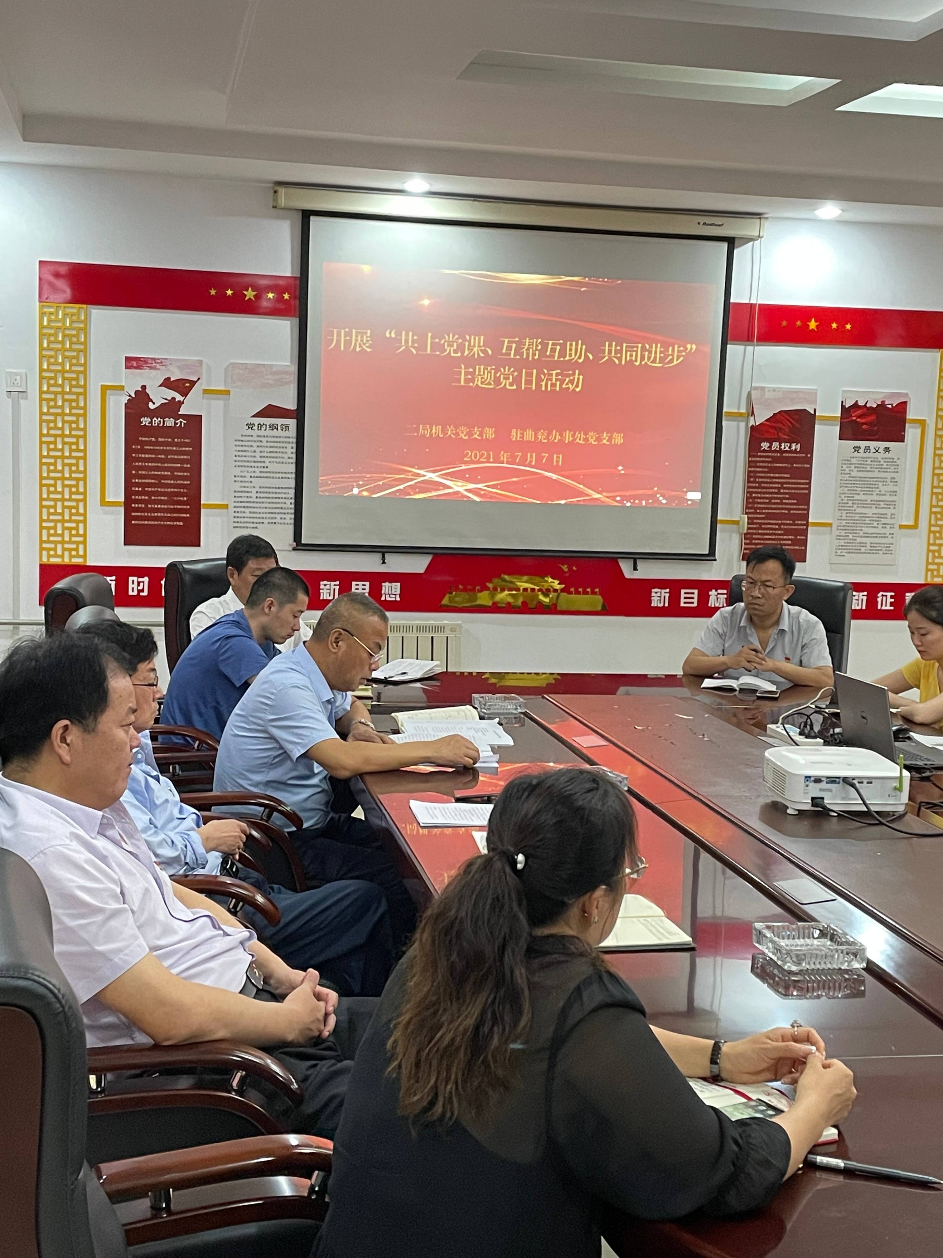 活動(dòng)開(kāi)始,兩個(gè)支部分別介紹了各自參會(huì)的人員,隨后,二局機(jī)關(guān)黨支部書(shū)記孫友群同志為大家講授“共上黨課”第一課—《銘記黨史 不忘初心 牢記使命》,孫友群介紹了中國(guó)共產(chǎn)黨黨史、新中國(guó)史、改革開(kāi)放史和社會(huì)主義發(fā)展史,并將內(nèi)容與實(shí)例相結(jié)合,為大家進(jìn)行了生動(dòng)的解讀,與會(huì)人員認(rèn)真聽(tīng)、仔細(xì)記,紛紛表示對(duì)中國(guó)共產(chǎn)黨有了更深刻的理解,將不忘黨恩,砥礪前行。最后,參會(huì)人員進(jìn)行了工作業(yè)務(wù)和黨建方面的交流。