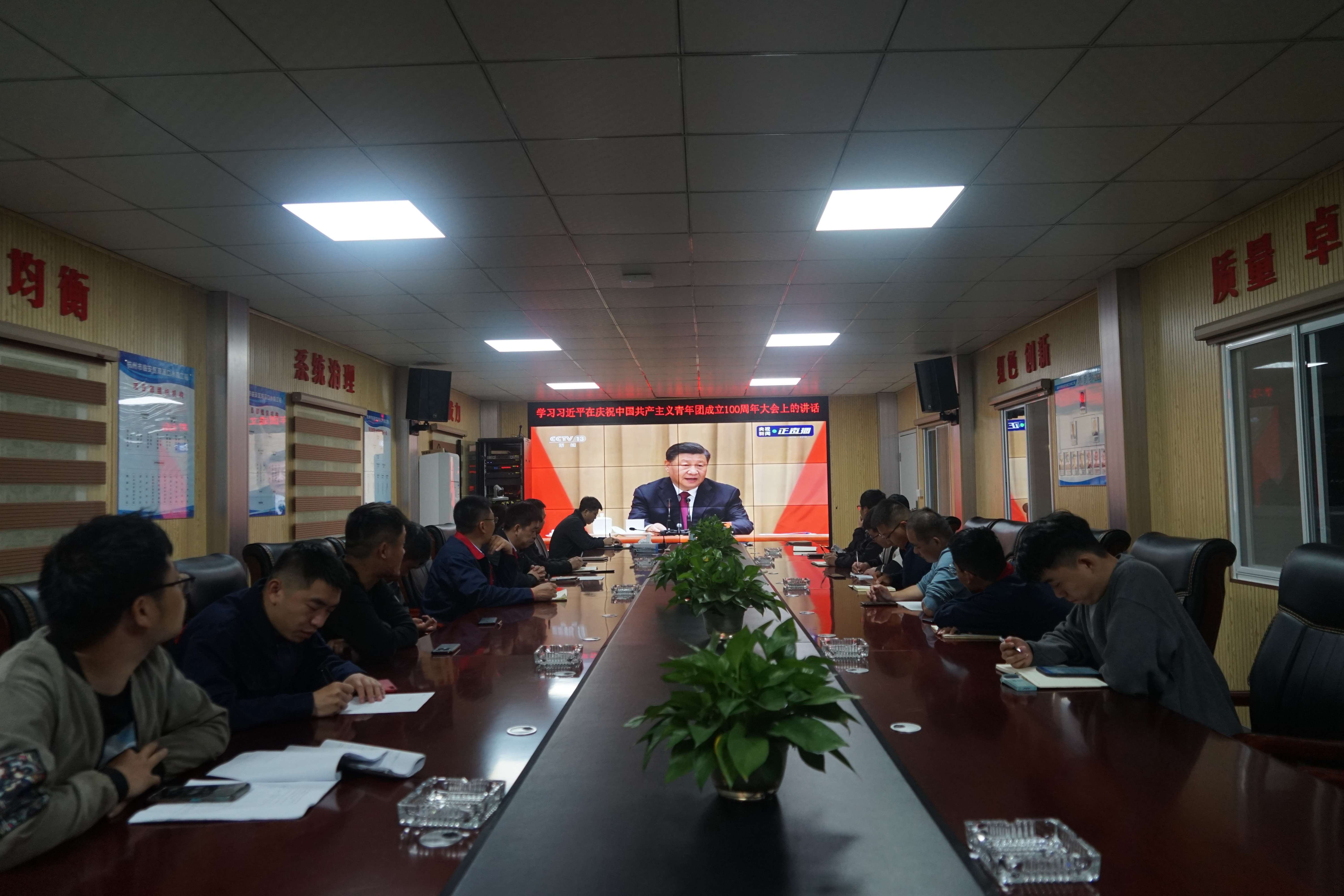 5月10日,杭州魯潤公司與第六分公司共同組織雙溪口水庫工程團員青年,觀看中國共產(chǎn)主義青年團成立100周年慶祝大會實況。慶祝大會上,習近平總書記發(fā)表了重要講話。