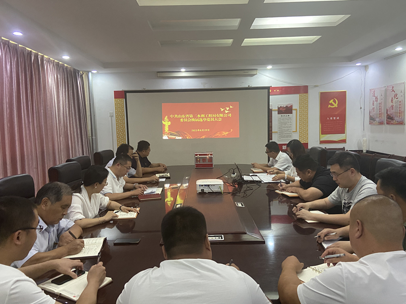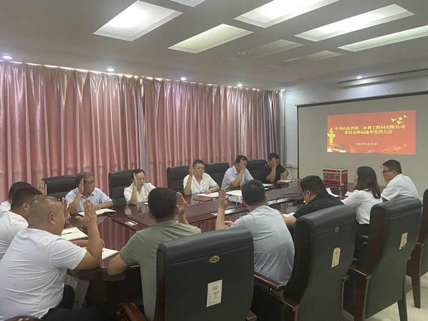 經(jīng)山東水總黨委批準,8月29日下午,二局有限公司黨委召開全體黨員大會,進行黨委換屆選舉工作。會議由黨委書記、執(zhí)行董事、總經(jīng)理王傳波主持,公司全體黨員參加。