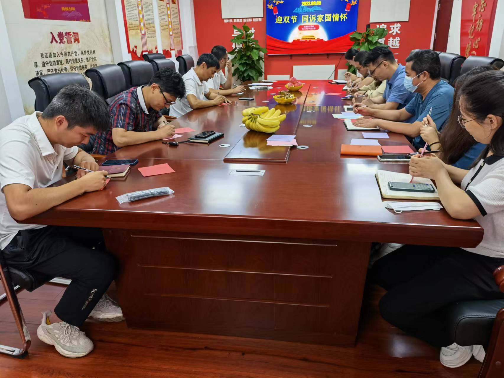 2022年9月9日是毛澤東逝世46周年,活動先是同讀《月寄人間無限情——讀毛澤東詩詞中的詠月章句》,共同紀念偉大領(lǐng)袖。隨后一起觀看黨員、群眾制作的廉潔小視頻,倡導(dǎo)干部職工廉潔過雙節(jié)。最后大家同寫寄語、同吃月餅,相互祝福,祝福家庭美滿幸福、祝福公司更好更快的發(fā)展、祝福祖國更加繁榮富強,并表示要將個人的努力和家國情懷融入到不懈奮斗中去!